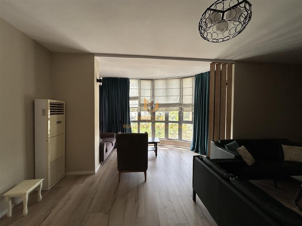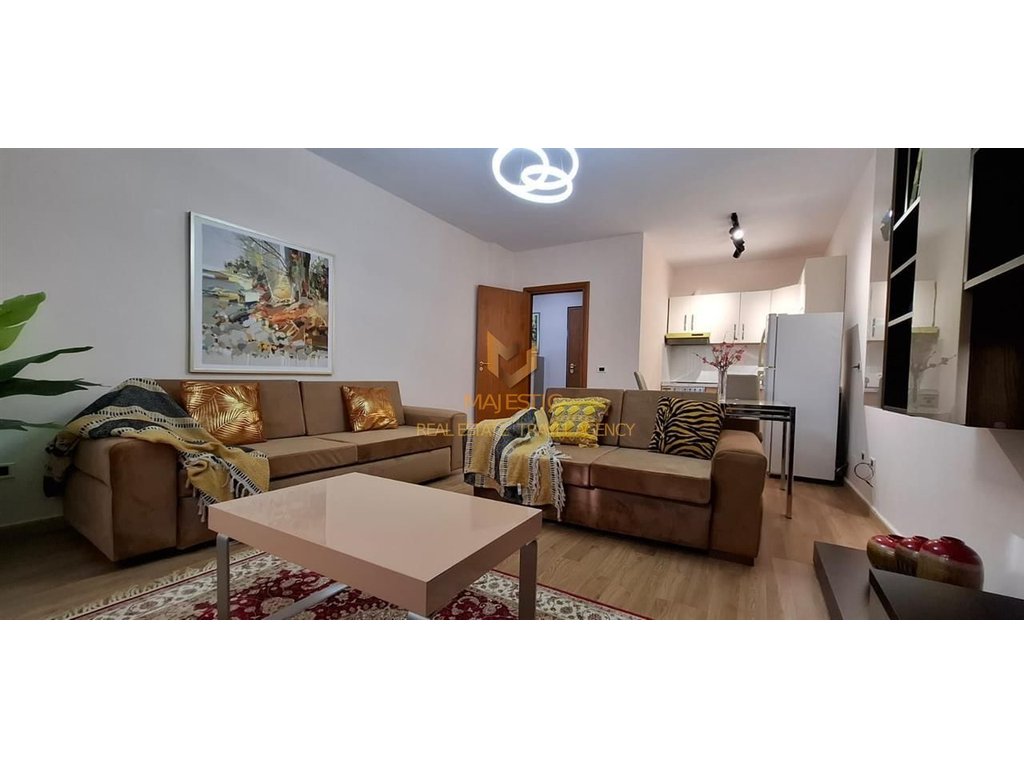 Ky apartament me 2 dhoma gjumi dhe 2 banjo ofrohet për qira në zonën e Kopshtit Botanik në Tiranë, në katin e dytë të një ndërtese me pesë kate.